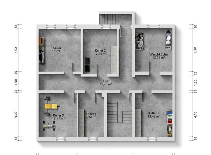 Das Objekt ist voll unterkellert.
