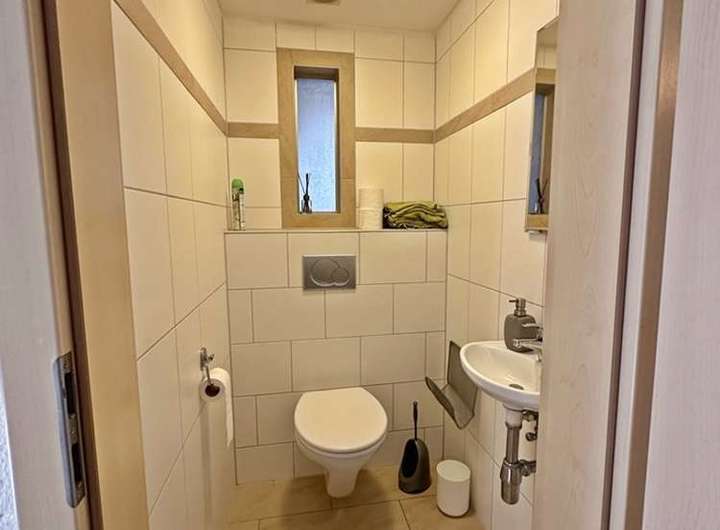 Das Tageslichtbad ist mit einer Eckbadewanne, Dusche, Doppelwaschbecken, Toilette, Spiegelschrank und Fußbodenheizung ausgestattet und bietet somit höchsten Komfort. Zusätzlich gibt es ein Gäste-WC sowie einen praktischen Abstellraum in der Wohnung.