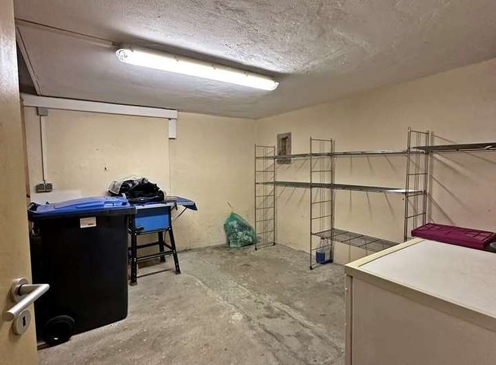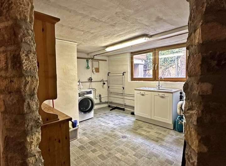 Im Erdgeschoss befinden sich ein Kellerraum, eine gemeinschaftliche Waschküche sowie ein Abstellbereich für Mülltonnen. Die Kehrwoche erfolgt im Wechsel mit der zweiten Partei.