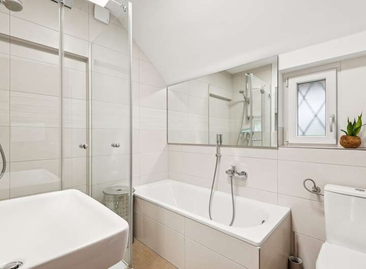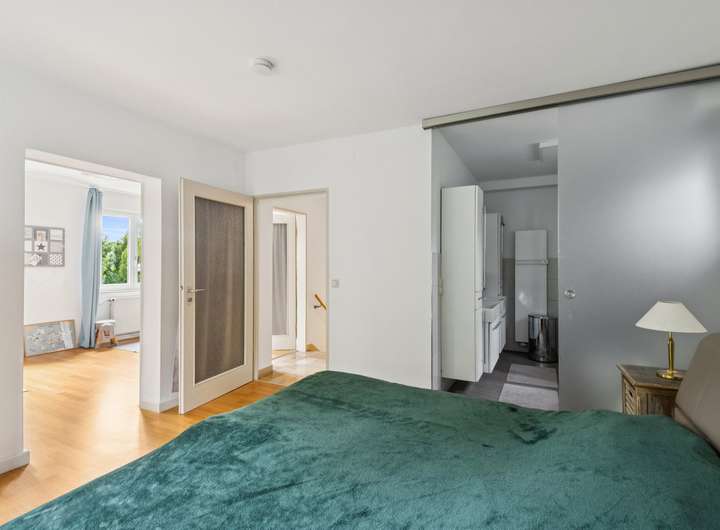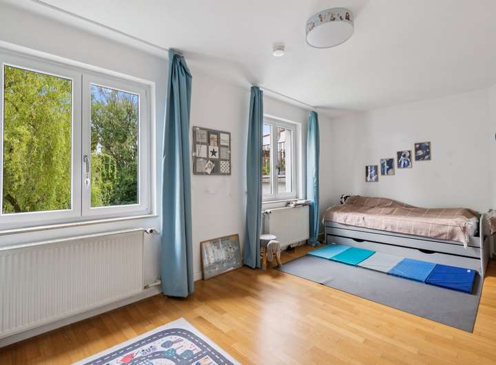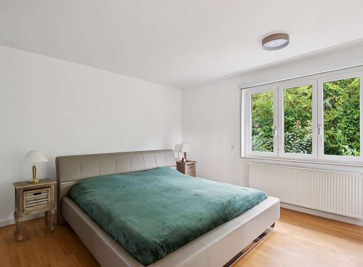 Auf dem Weg in das erste Obergeschoss, welches mit wenigen Stufen zu erreichen ist, befindet sich zunächst ein großes Zimmer mit Blick in den Garten, ein weiteres Zimmer mit kleinem französischem Balkon und ein Tageslicht-Badezimmer mit Badewanne und Dusche, welches kürzlich erneuert wurde. Über wenige weitere Stufen, gelangen Sie in das Dachgeschoss, welches mit zwei weiteren Räumen überzeugt. Hier steht Ihnen zudem ein großer Dachboden zur Verfügung, der neben den zahlreichen Kellerräumen für weitere Abstellfläche sorgt. Im Gartengeschoss des Objekts finden Sie ein weiteres großes Zimmer vor, welches aktuell als Kinderzimmer genutzt wird. Hierneben befindet sich ein weiteres Zimmer mit erneuertem Tageslicht-Badezimmer En-Suite, wodurch es sich ideal als Ankleide- oder Schlafzimmer eignet. Weiter gelangen Sie eine Etage tiefer in den Keller des Objekts, der mit einem Hauswirtschaftsraum, einem Abstellraum, einem Raum für die Heizungsanlage (Gas-Zentralheizung von 2015) und einem Zugang zur Garage überzeugt. Neben der großen Garage befindet sich ein weiterer großer Abstellraum, in dem wunderbar die Gartenutensilien untergebracht werden können oder Ihre Südpflanzen überwintern.