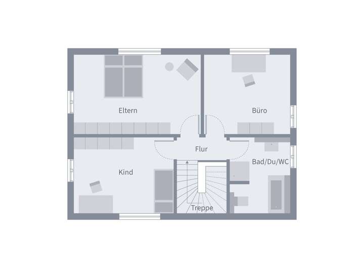 Im Obergeschoss erwarten Sie großzügige Rückzugsorte: Ein Elternschlafzimmer mit optionaler Ankleide, zwei Kinderzimmer sowie ein modern ausgestattetes Badezimmer bieten höchsten Wohnkomfort für jedes Familienmitglied.