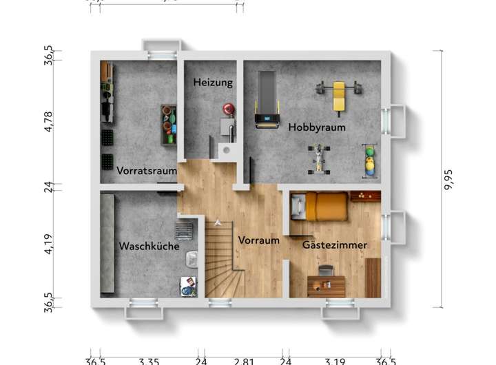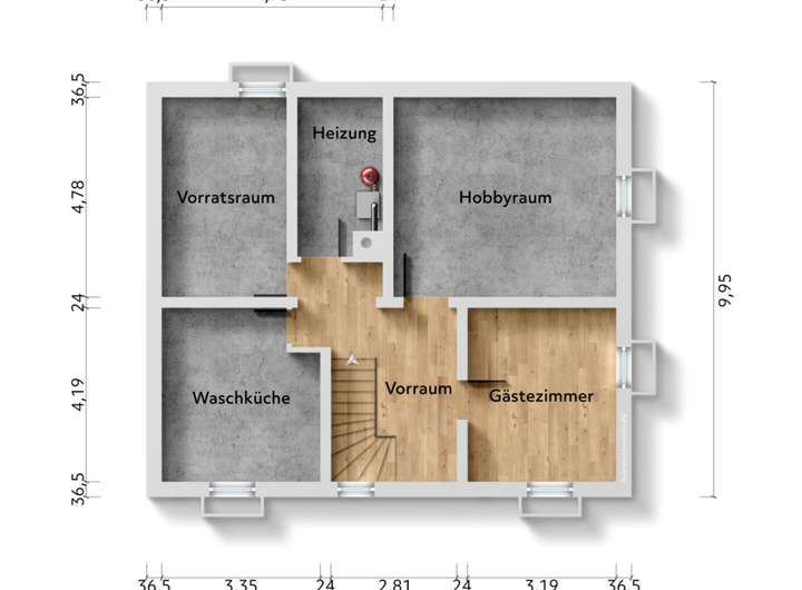 HAT MAN DOCH GERNE, der massiv errichtete Keller mit rund 80 m² Nutzfläche bietet Ihnen ausreichend Platz für eine praktische große Waschküche und/oder Hobbyräume.