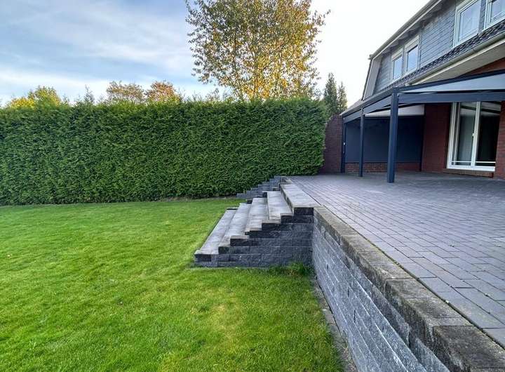 Ausstattung & Highlights: Bewässerungsanlage, Rasenroboter, zweite Terrasse mit Pavillon ideal für Entspannung und gesellige Stunden im Garten.