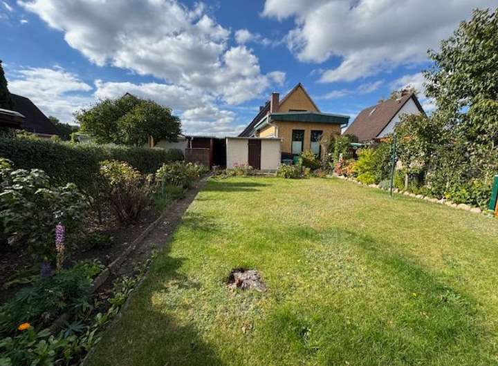 Das Haus steht auf einem Eigengrundstück mit ca. 397 m² Fläche. Vor dem Haus sowie im rückwärtigen Bereich gibt es schöne Gartenflächen, perfekt für entspannte Stunden im Freien. Die Garage bietet zudem einen Durchgang zum hinteren Gartenteil.