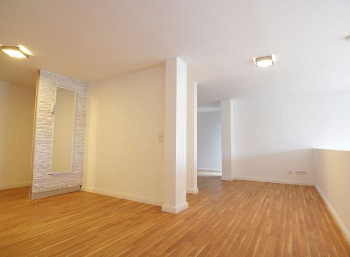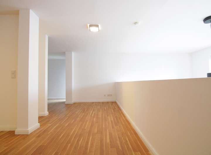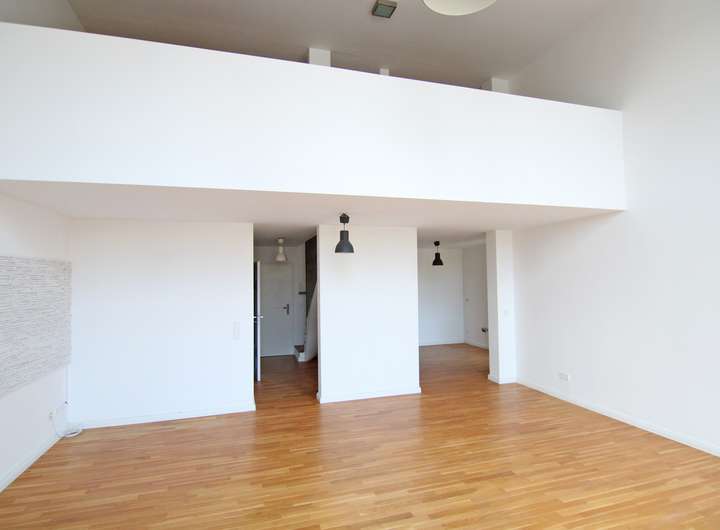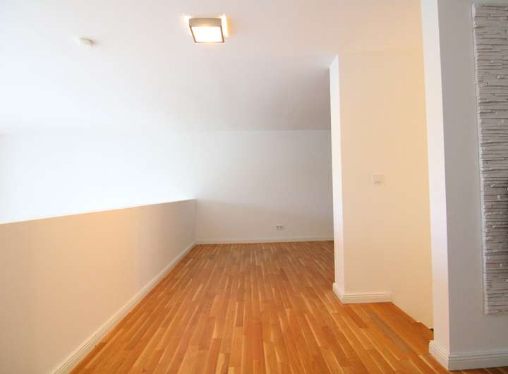 Die designorientierte Wohnung wurde im Jahr 2015 unter Verwendung von hochwertigen Materialien fertiggestellt. Das Konzept sah eine lichtdurchflutete Wohnung mit großer Galerie vor - und das ist dem Bauherrn sehr gelungen. Die Wohnung wirkt luftig und hat ein besonderes Ambiente, auch durch sehr große Fenster. Das Badezimmer zeigt eine hochwertige Fliesung und ist hier mit Badewanne und auch einer großen Dusche ausgestattet. Bodenseitig wurde im unteren Zimmer und oben (der Galerie) Parkett verbaut. Natürlich gibt es auch einen angemessen geräumigen Balkon, der vom Wohnzimmer aus abgeht. Die Küche ist frei von Ausstattungen, so dass Sie sich diesen Bereich ganz nach eigenen Vorlieben einrichten können. Auch um Ihren Wagen müssen Sie sich nicht sorgen: für diese Wohnung steht ein Kfz-Außenstellplatz auf dem Grundstück bereit, den Sie für zusätzlich EUR 80,00/Monat mit anmieten können.