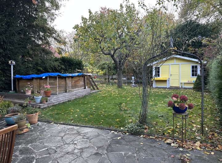 - großer Garten mit Pool, Gartenhaus und Geräteschuppen