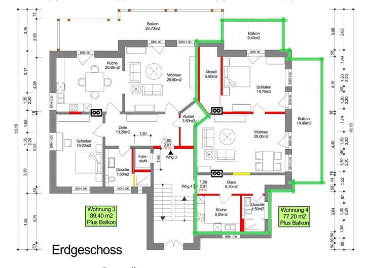 Besonders hervorzuheben ist die beeindruckende Balkonfläche von insgesamt 26,70m² m² die Ihnen viel Platz zum Entspannen im Freien bieten.