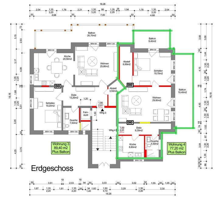 Die Balkonflächen werden zu 50% der Wohnfläche angerechnet.