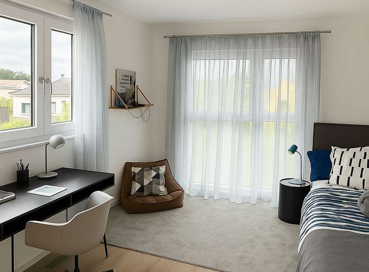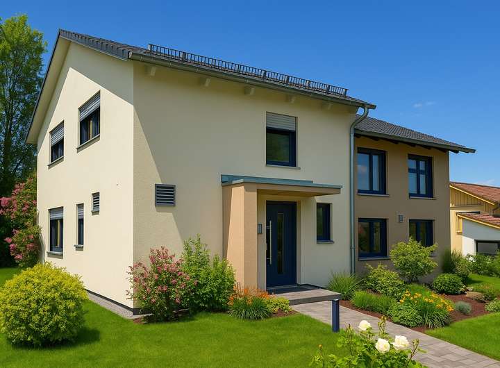 Die Kombination aus Photovoltaik, Wärmepumpe und Dreifachverglasung garantiert umweltfreundliches und kosteneffizientes Wohnen.
