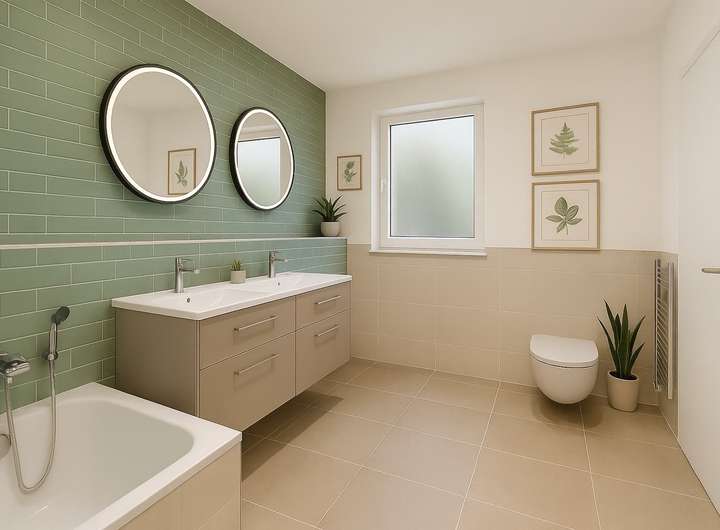 • Großformatige Fliesen (60 × 120 cm) und edler Designboden