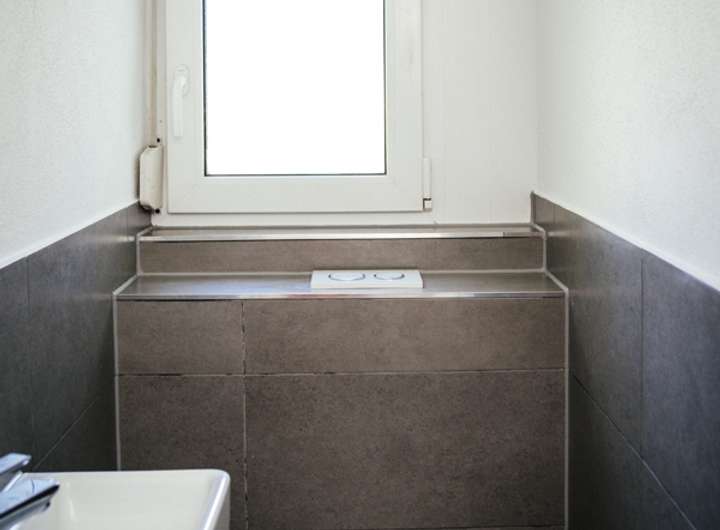 • Großformatige Fliesen im EG, Gäste WC und Elternbad