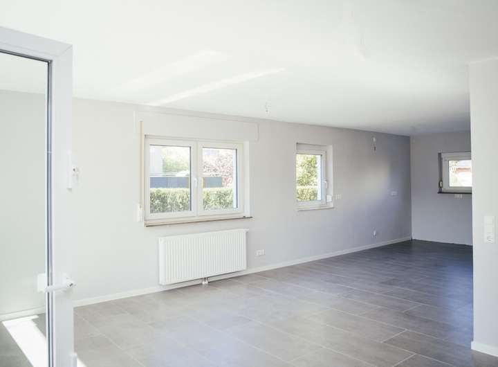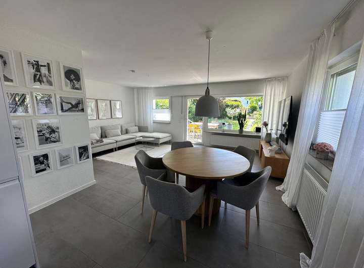 • Heller, offener Wohn-/Ess-/Küchenbereich mit Ausgang auf die Terrasse (Markise) und Garten (Südwest Ausrichtung)