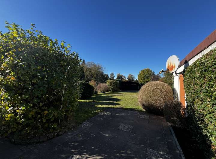 Das Grundstück umfasst ca. 964 m². Der Garten ist gepflegt und bietet verschiedene Aufenthaltsbereiche, Platz für Spielgeräte sowie ein Blockhaus mit Terrasse. Zwei Gartenhäuser stehen als zusätzlicher Stauraum für Geräte und Fahrräder zur Verfügung.