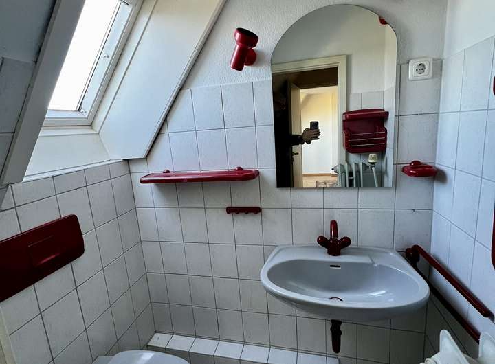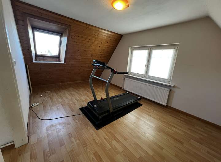 Das Obergeschoss verfügt über zwei weitere Zimmer, eines davon mit Zugang zu einem Balkon, sowie ein separates Gäste-WC.