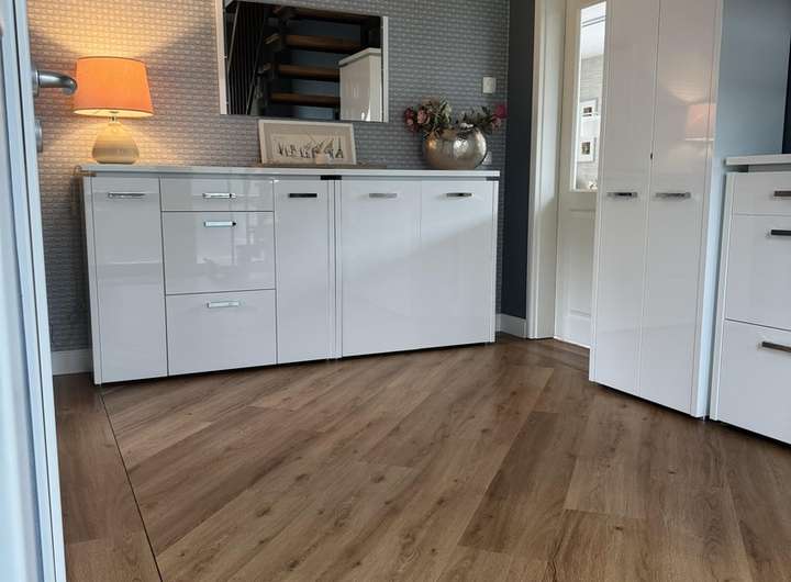 Im gesamten Erdgeschoss wurde in 2023 hochwertiger Design-Venyl-Boden in ansprechender Parkettoptik verlegt. Alle Fenster im Erdgeschoss verfügen über (großteils elektrische) Außenrolläden.
