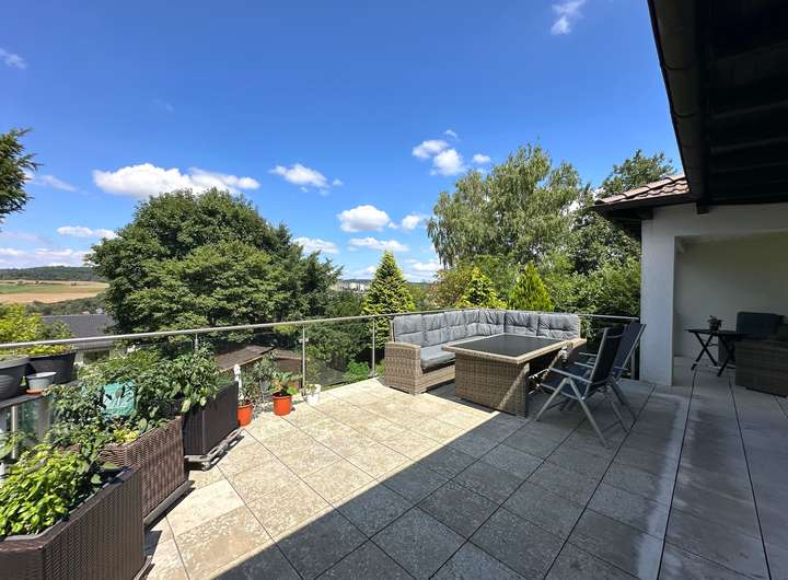 - Zugang zu großzügiger Terrasse mit Fernblick