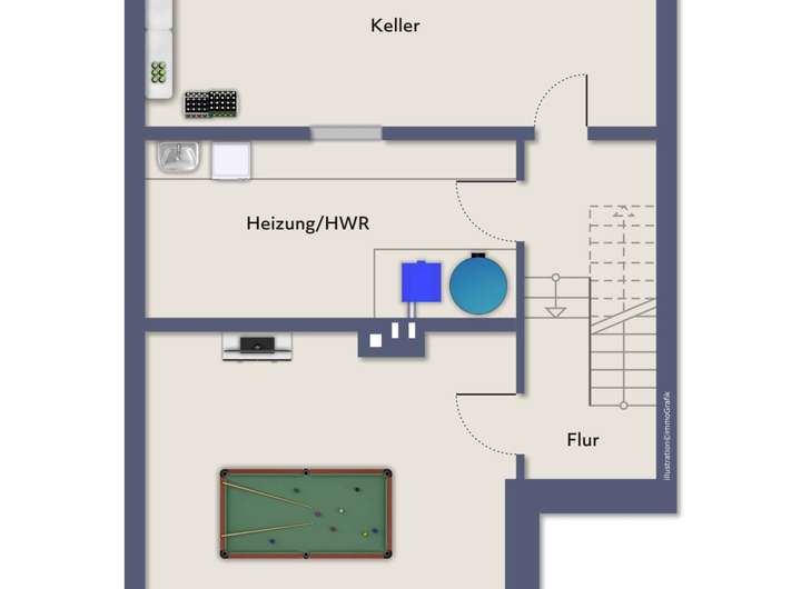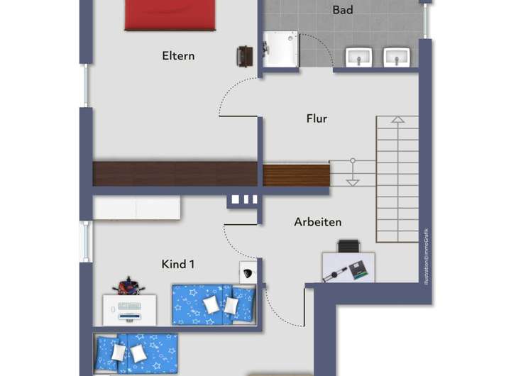 Die Grundrisse sind ggfs. nicht maßstabsgerecht. Bei evtl. Einrichtungsgegenständen handelt es sich um Möblierungsbeispiele. Es ist möglich, dass infolge von vorgenommenen Umbauten die Grundrisse nicht in vollem Umfang den tatsächlichen Gegebenheiten entsprechen.