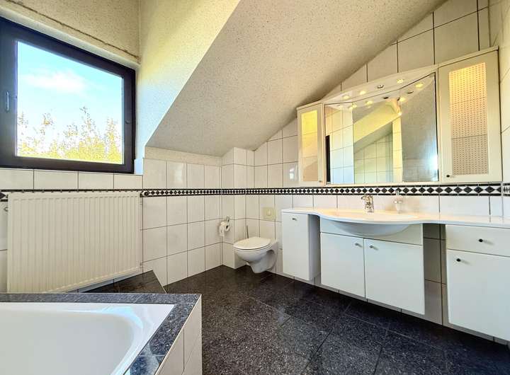 Beide Bäder sind mit edlem Naturstein-Granit ausgestattet, was dem Haus eine hochwertige Note verleiht. Insgesamt verbinden die offenen Ebenen, die versetzten Räume und die hellen, großzügigen Bereiche ein außergewöhnliches Wohngefühl, das Komfort, Stil und Lebensqualität auf besondere Weise vereint.