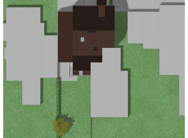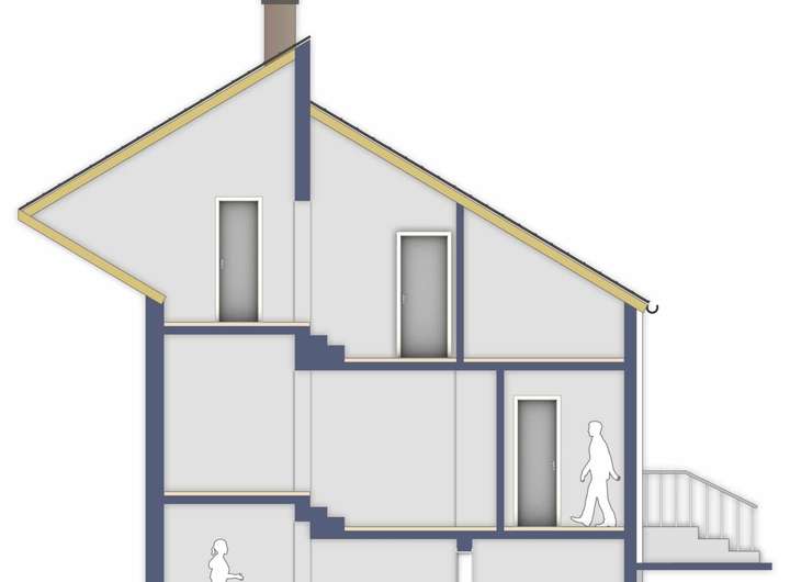 Das Haus erstreckt sich über zwei Vollgeschosse mit 30° Pultdach und ist unterkellert.