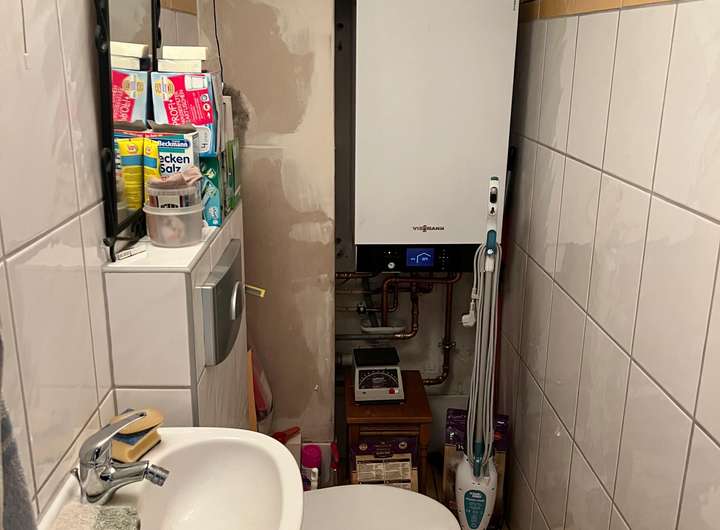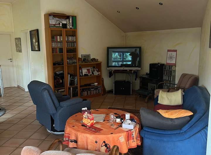 Die sanierungsbedürftige Doppelhaushälfte (Baujahr 1950) mit ca. 107 m² Wohnfläche, die Raum für kreative Gestaltung und Modernisierung bietet, steht nun seit einiger Zeit leer und teilt sich wie folgt auf: