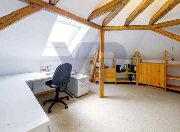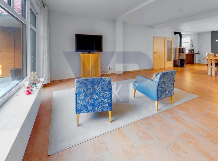 Mit insgesamt sechs Zimmern, darunter fünf geräumige Schlafzimmer, und zwei Badezimmern, ist dieses Haus perfekt für Familien oder alle, die gerne viel Platz genießen. Der Wohnbereich besticht durch edle Laminat- und Fliesenböden und wird durch einen gemütlichen Kaminofen zum absoluten Highlight. Genießen Sie die warme Atmosphäre und den Blick auf die Stadt vom Balkon aus.