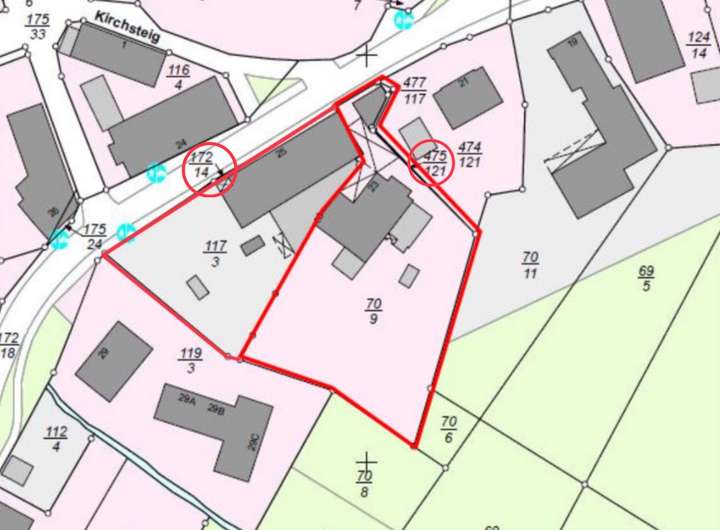 3.877 Quadratmetern. Das Grundstück in der Hauptstraße 23 umfasst ca. 2.146 Quadratmeter, während das angrenzende Grundstück in der Hauptstraße 25 eine