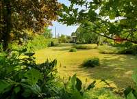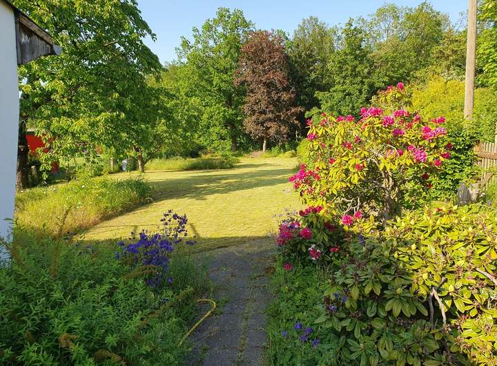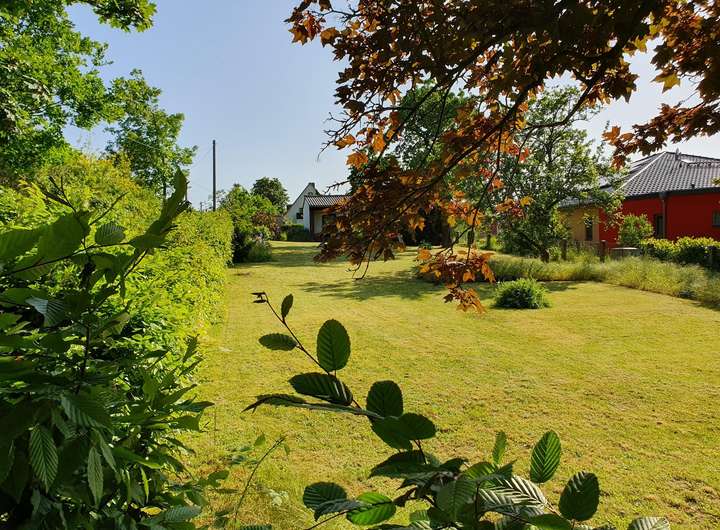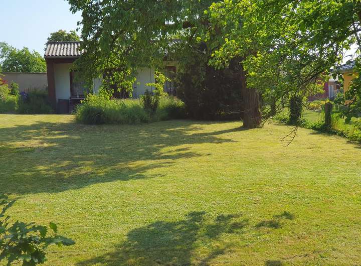 Auf dem Grundstück steht noch ein sanierungsbedürftiger Bungalow, der integriert, zum Gästebungalow umgebaut , oder abgerissen werden kann.