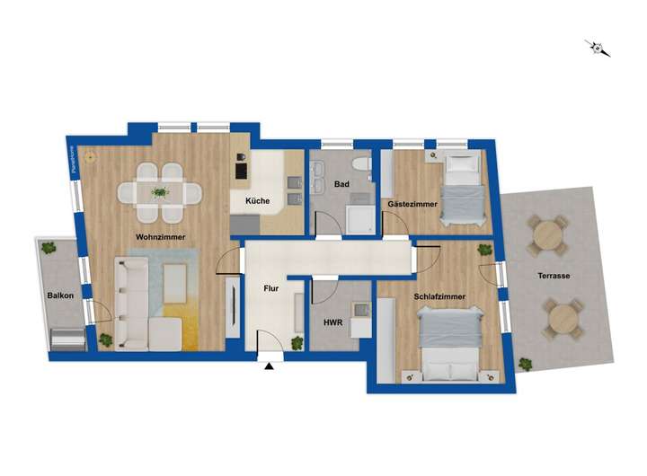 Die angebotene Terrassenwohnung befindet sich im Erdgeschoss eines modernen Mehrfamilienhauses ca. aus dem Baujahr 2015. Mit einer Wohnfläche von ca. 87 m² überzeugt sie durch einen durchdachten Grundriss: Der großzügige Wohn- und Essbereich mit angrenzender offener Küche bildet den Mittelpunkt der Wohnung. Ein gemütliches Schlafzimmer sowie ein weiteres Zimmer, das sich ideal als Arbeits-, Gäste- oder Kinderzimmer eignet, bieten vielfältige Nutzungsmöglichkeiten. Das stilvolle Badezimmer ist sowohl mit Dusche als auch Handtuchheizkörper ausgestattet; ein separater Abstellraum schafft zusätzlichen Stauraum. Ein besonderes Highlight stellt die sonnige Terrasse mit Blick in den Hof dar, die den Wohnraum in den warmen Monaten harmonisch erweitert. Zur hochwertigen Ausstattung gehören isolier-verglaste Fenster und eine komfortable Fußbodenheizung. Die Beheizung der Immobilie erfolgt über eine zentrale Gasheizung. Der Energieausweis zeigt die Energieeffizienzklasse C.