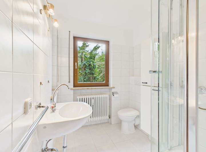 Sie befindet sich direkt an einem Landschaftsschutzgebiet – praktisch vor der Haustür. Direkt gegenüber öffnet sich freie Natur mit unverbaubarem Gegenüber und weitem Blick in den Wald.