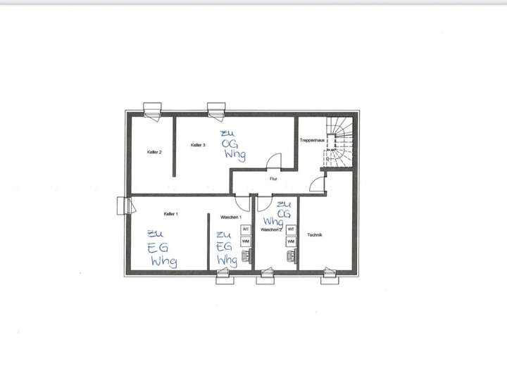 großer Keller mit mehreren Lagerräumen und Waschkeller