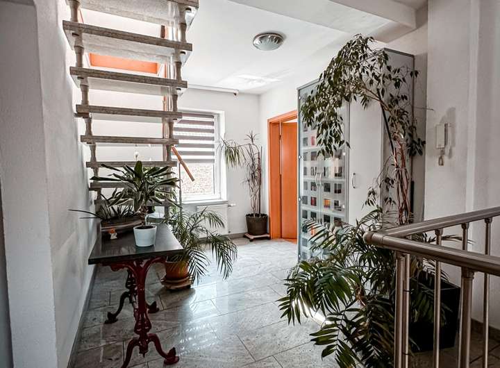 Das direkt gegenüberliegende Bürohaus wurde hochwertig ausgebaut und bietet auf zwei Etagen optimale Bedingungen für eine gewerbliche oder kreative Nutzung.
