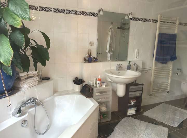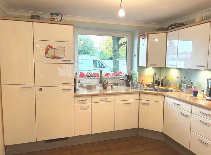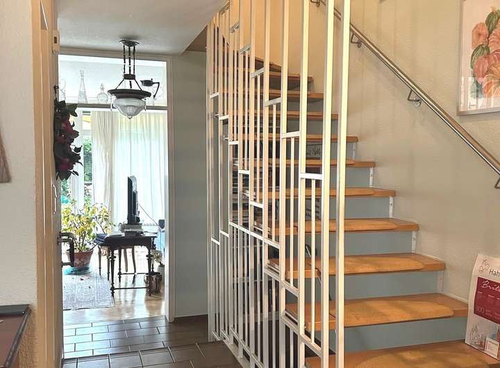 Der offene und helle Wohn-/Essbereich mit Split-Level und Kanin schafft ein modernes Wohngefühl und lädt zu gemütlichen Stunden ein. Die hochwertige Küche sowie das Gäste-WC ergänzen das Erdgeschoss. Im Obergeschoss befinden sich das sanierte Bad mit Tageslicht sowie drei gut geschnittene Zimmer, die Ihnen vielfältige Nutzungsmöglichkeiten bieten.