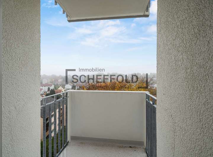 Ein besonderes Highlight dieser Wohnung ist der Balkon mit Ostausrichtung. Von hier aus genießen Sie einen herrlichen Ausblick auf den Stadtteil "Am weißen Bild" sowie das nahegelegene Naherholungsgebiet "Lindele" – perfekt für entspannte Stunden im Freien.