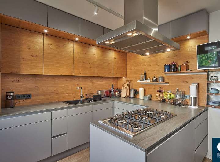Im Erdgeschoss finden Sie bereits das erste Highlight der Immobilie: die maßangefertigte Küche mit einem Gasherd und namhaften Miele Geräten, welche 2020 vom Schreiner gebaut wurde. Mit der Arbeitsplatte aus Keramik sowie Fronten aus Eichenholz wurden hier hochwertige Materialien verbaut. Diese Küche ist im Mietpreis enthalten.