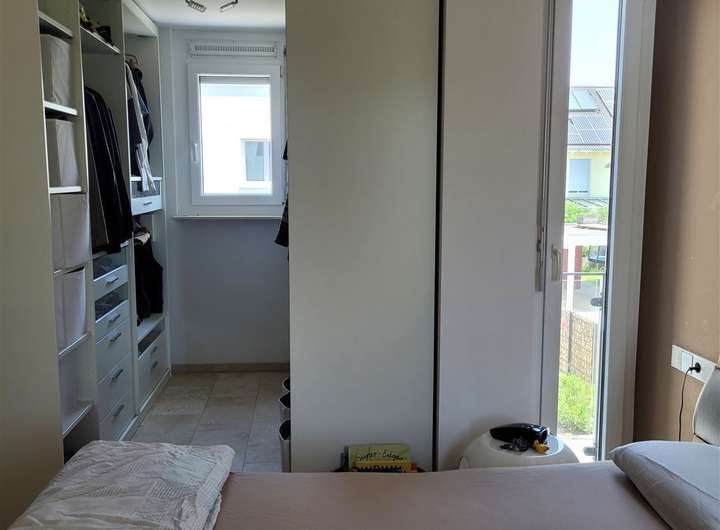 Im Obergeschoss erwartet Sie ein luxuriöses Badezimmer mit edlem Marmor, einer großzügigen Dusche, einer eleganten Eckbadewanne sowie einem modernen Doppelwaschtisch. Besondere Extras wie ein integriertes Unterputzradio im Bad und Schlafzimmer schaffen zusätzlichen Komfort. Das Schlafzimmer verfügt über einen begehbaren Kleiderschrank mit viel Stauraum, ergänzt durch drei weitere helle Kinderzimmer.