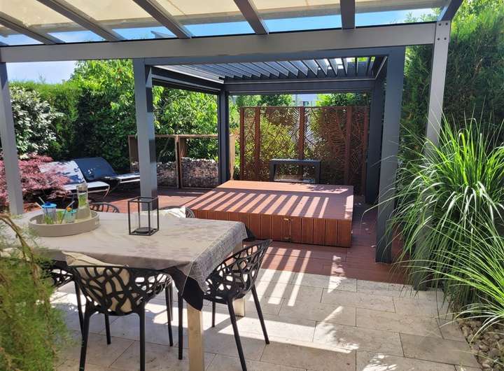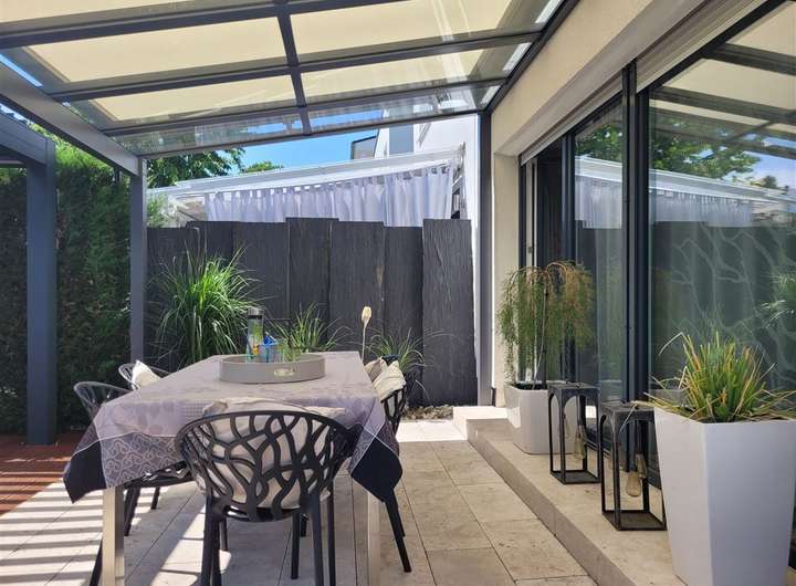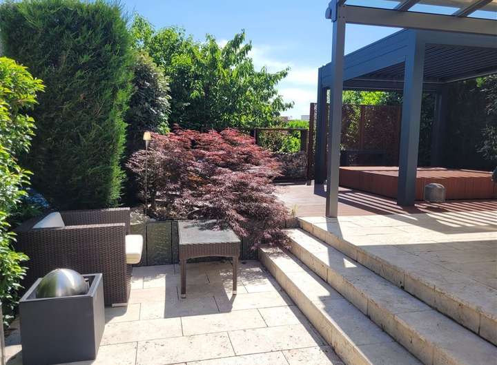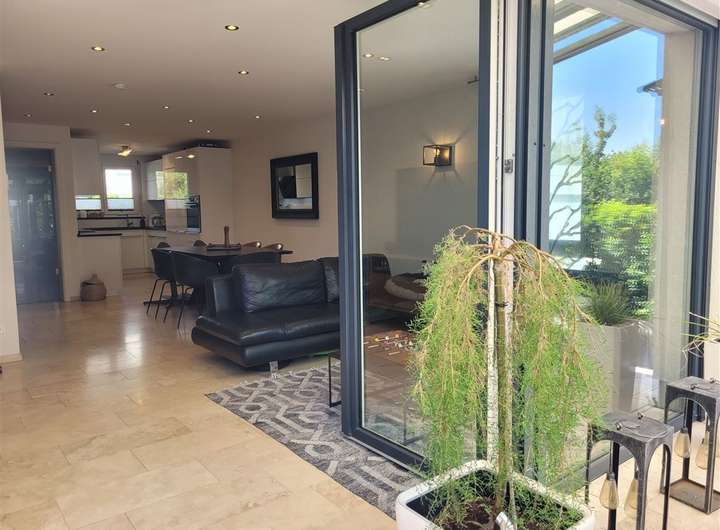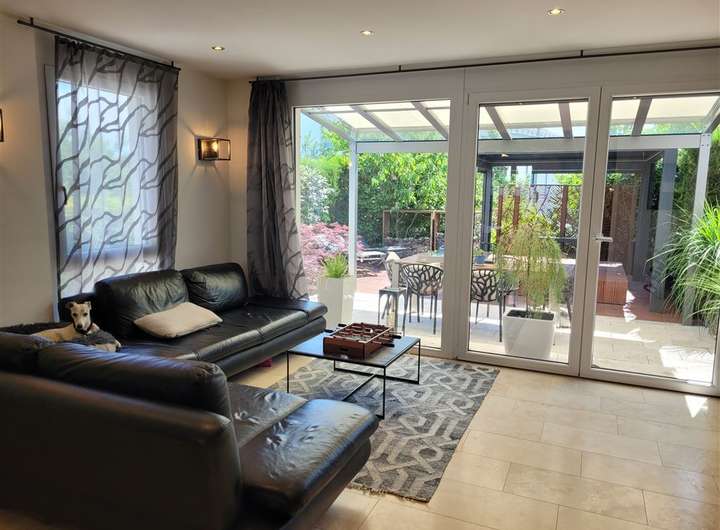 Schon beim Betreten dieses großzügigen Hauses spürt man sofort den besonderen Charme und die Liebe zum Detail. Vom Eingangsbereich eröffnet sich ein heller, offener Wohnraum mit Blick bis zur Terrasse – ein echtes Highlight dieses Hauses. Dort erwartet Sie ein exklusiver Außen-Whirlpool mit Glasüberdachung, integrierter Beschattung, stimmungsvoller Beleuchtung und geschmackvoller Bepflanzung – perfekt für entspannte Stunden im Freien.
