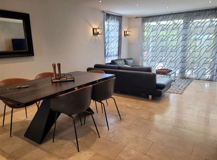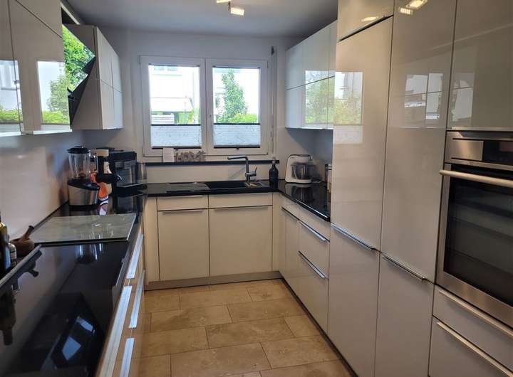 Der Wohn- und Essbereich besticht durch hochwertige Materialien, die im gesamten Haus konsequent verbaut wurden. Die stilvolle Markenküche von Schüller überzeugt mit erstklassigen Geräten und zeitlosem Design – ein Ort, der Kochen und Genießen vereint.