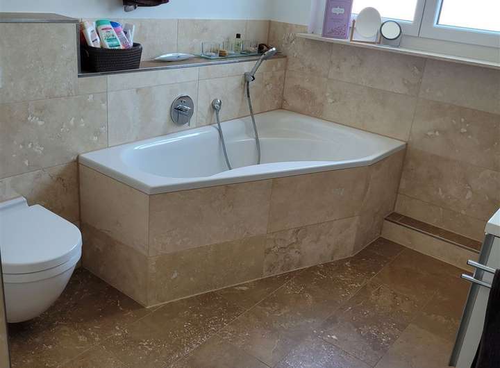 - Tageslichtbad mit Marmor - Eckbadewanne- Dusche