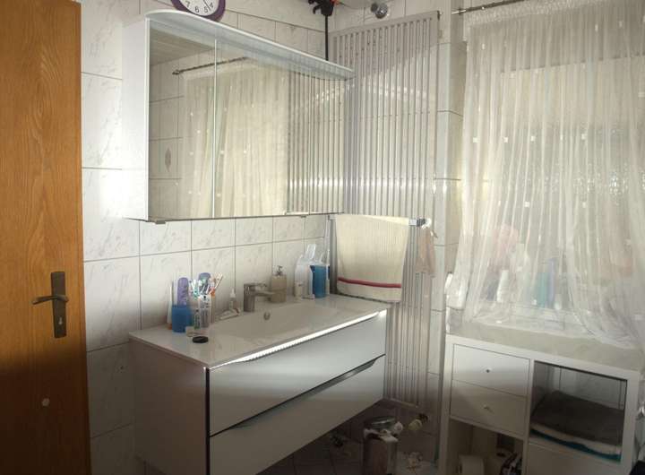 Das Haus wurde 1950 gebaut, wurde stetig renoviert und saniert und ist in einem guten und gepflegten Zustand. Es ist teilunterkellert, hat einen Balkon und zwei Terrassen (davon eine überdacht). Zum Haus gehört ein Nebengebäude mit Garage, Heizungs-, Hobby- und Abstellraum.