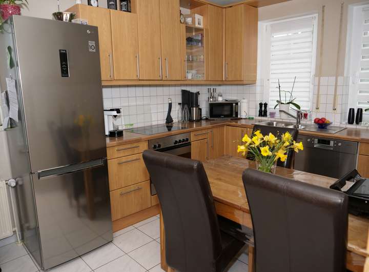 Die Wohnfläche beträgt 98 Quadratmeter plus etwa 18 Quadratmeter im nachträglich ausgebauten Dachgeschoss.