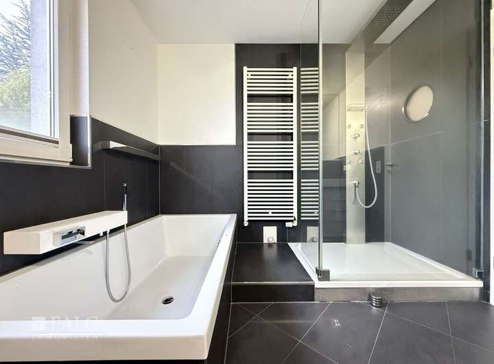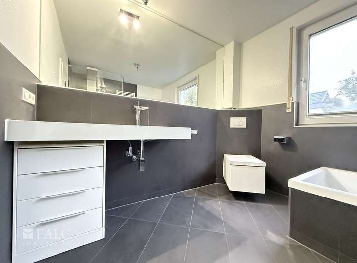 Das Erdgeschoss empfängt Sie mit einem großzügigen, offenen Wohn- und Essbereich, der dank großer Fensterflächen lichtdurchflutet ist und direkt auf die beiden Terrassen sowie in den Garten führt. Die stilvolle Gestaltung in dezenten Farbtönen, edle Fliesen und hochwertige Edelstahlakzente unterstreichen das moderne Wohnambiente. Insgesamt stehen Ihnen fünf vielseitig nutzbare Zimmer zur Verfügung, darunter ein charmantes Loftzimmer mit eigenem Bad im Dachgeschoss sowie eine offene Galerie. Zwei voll ausgestattete Bäder inklusive Gäste-WC bieten Komfort für die ganze Familie.