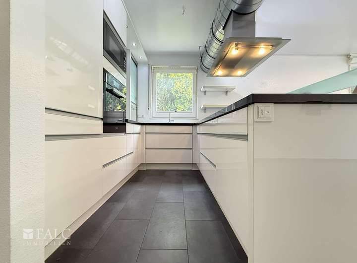 Eine stilvolle und hochwertige Einbauküche rundet das Angebot ab.