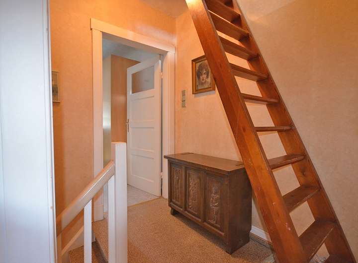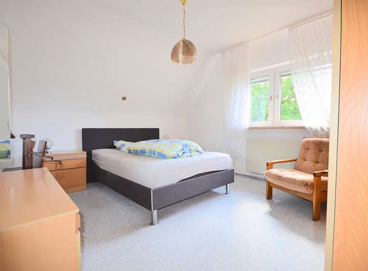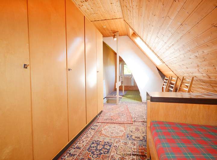 Im Dachgeschoss stehen zwei gut geschnittene Schlafzimmer sowie ein Duschbad zur Verfügung. Eine Raumspartreppe führt in das ausgebaute Dachstudio, in dem die Eigentümer einen vielseitig nutzbaren Raum hergerichtet haben.