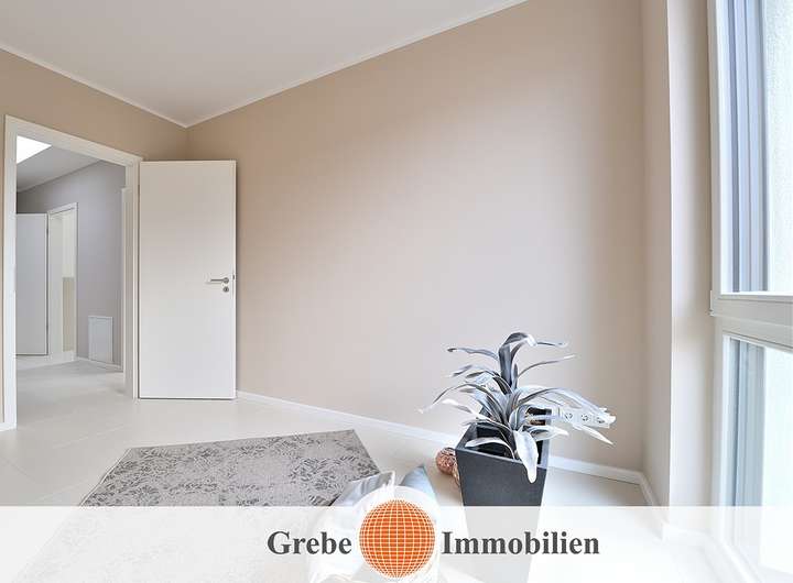 Um Ihnen die Räume voll darstellen zu können, fotografieren wir mit einem Weitwinkelobjektiv. In Verbindung mit dem möblierten Grundriss erhalten Sie einen guten Eindruck von den Raumgrößen.