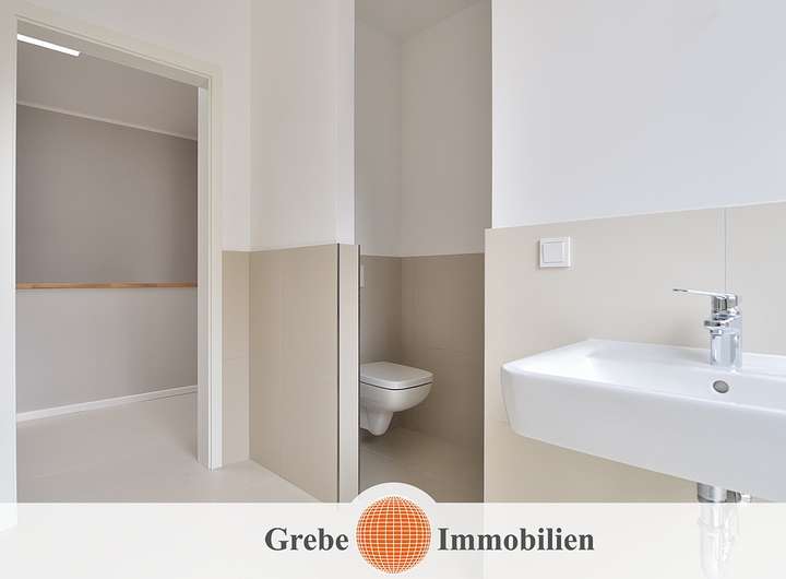 Die Bilderserie vom Fotografen Andreas Franke stammt aus einer der ersten fertig gestellten Haushälften. Die Fotos wurden vor der Erstvermietung aufgenommen. Die Außenaufnahmen sowie die Aufnahmen im EG vom Familienzentrum wurden im Januar 2025 aufgenommen.