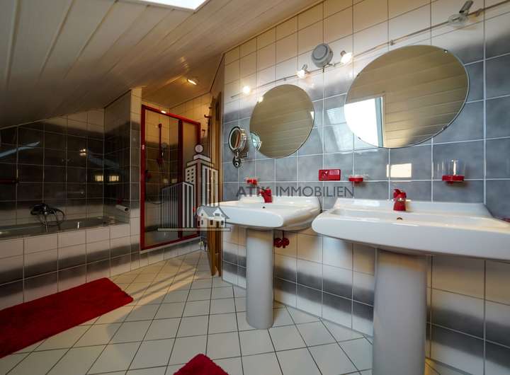 + Jeweils ein vollwertiges Badezimmer mit Badewanne und Dusche im Erd- und Obergeschoss, sowie zusätzlich ein separates Gäste-WC auf beiden Etagen
