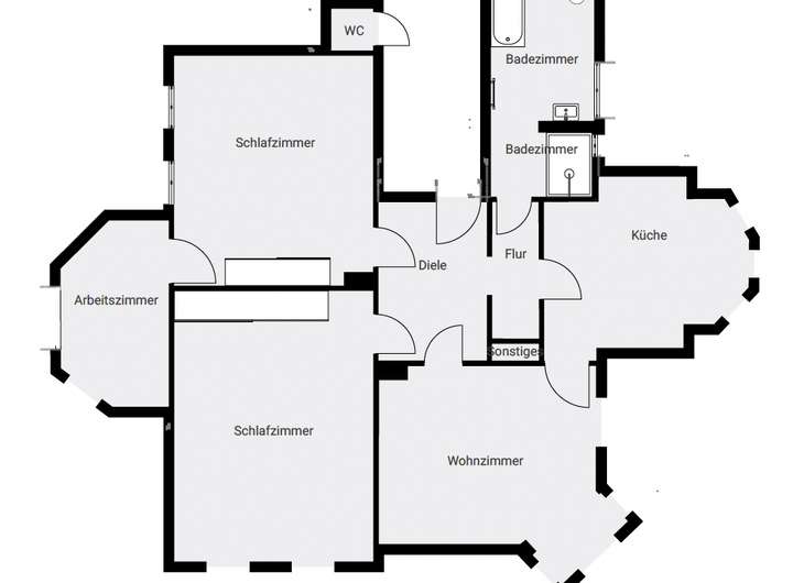 Die Wohnung verfügt derzeit über keinen Balkon. Nach Rücksprache besteht jedoch die Möglichkeit, einen Anbau zu realisieren (siehe möglichen Grundriss).