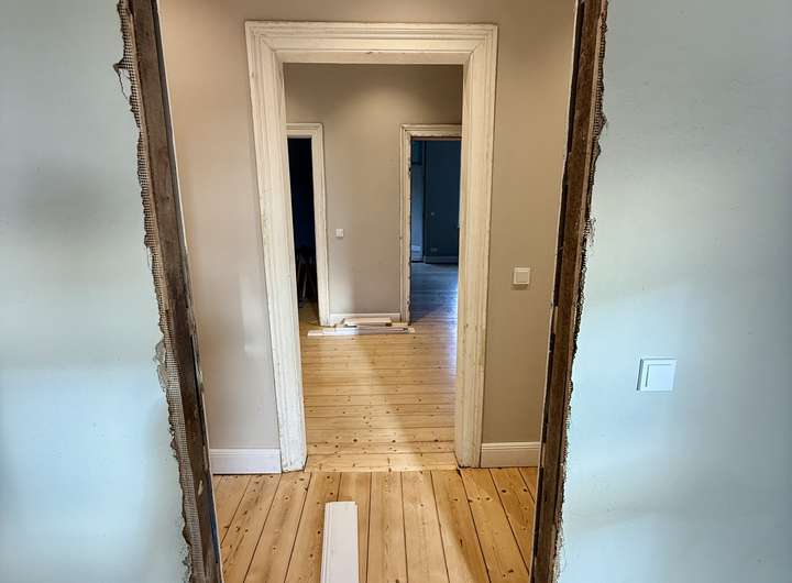 Hohe Decken, frisch geschliffene Dielenböden, Holzkassettentüren und große neue Fenster sorgen für ein helles und einladendes Ambiente. Dämmmaßnahmen sorgen für ein energieeffizientes Wohnen. Die Decken wurden darüber hinaus entkoppelt und minimal abgehangen für ein ruhiges und entspanntes Wohnen.