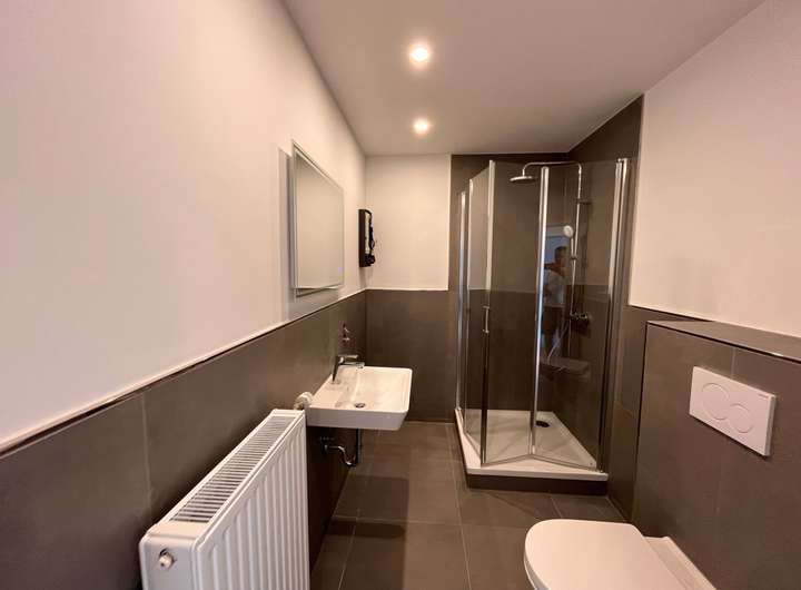 Alle Wohneinheiten verfügen über einen Balkon oder eine Terrasse sowie ein separates Kellerabteil. Die Wohnflächen variieren zwischen ca. 44 m² und 85 m². Die Grundrisse umfassen in der Regel ein Wohn- und Schlafzimmer, Küche, Bad, Abstellraum sowie Flur. Die größeren Wohnungen sind zusätzlich mit ein bis zwei weiteren Zimmern, einem Gäste-WC und einer Badewanne ausgestattet. Insgesamt wurden sieben der 32 Einheiten bereits umfassend modernisiert (siehe Bilder).