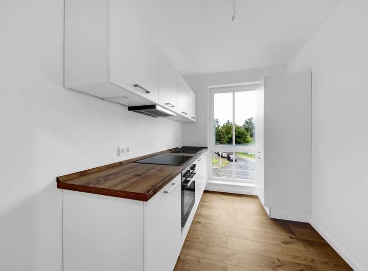 Wohnungsgrößen zwischen 44 m² und 85 m² bestehend aus Wohnzimmer, Schlafzimmer, Küche, Bad, Abstellraum und Flur.